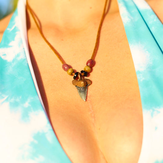 Tiger Shark Tooth Florida Fossil Shark Tooth Copper Pendant Necklace Beads